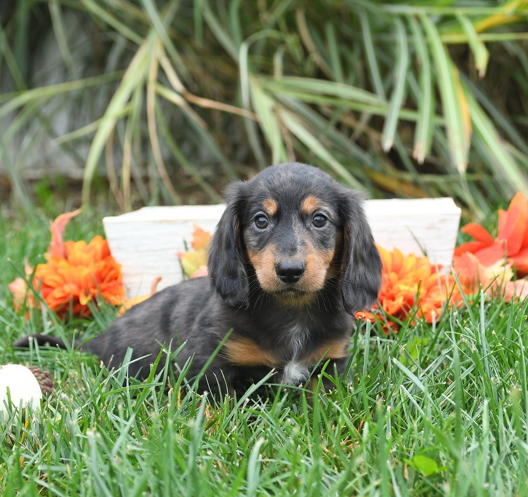 Are you in search of a cute, delightful little companion that will be by your side for many years to come? If so, this precious little Dachshund puppy will be just the thing for you! What better way to spend these beautiful fall days and the years to come than with an adorable new buddy that is sure to bring endless joy and entertainment to any household! This sweetheart is affectionate, friendly, playful and full of fun! His sweet, happy nature, wet puppy kisses and sparkling, kind eyes will melt your heart the moment you meet him! This cutie thrives on human affection and will rarely pass up a chance to curl up in a welcoming lap or loving arms for all the cuddles and snuggles he want. Quest loves attention and is sure to be the center of it no matter where he goes! This darling puppy has been born and raised here at our family home where he is loved and cared for! Quest is well socialized with children and adults and loves to play with everyone of all ages. This pup has been checked and looked over by a trusted veterinarian and is up to date on his dewormer and vaccination shots. He will also come with a thirty day health guarantee for your peace of mind. Quest is also registered under the American Canine Association, which is more commonly known as ACA. When you pick up Quest we will provide a little puppy care package to take home to help him adjust a little easier to his new home. In the package we give a small bag of puppy food, a toy, and a mini blanket. The mother, Esta, and father, Buck both enjoy life on the premises. The mother is a beautiful Black Piebald color and weighs 15 pounds and the father is a stunning Silver Dapple color and weighs 20 pounds. Get ready to start a new adventure with this cutie and imagine all of the memories you will make with the cutest side-kick by your side starting as soon as October 18th! Give us a call today with any questions you might have about the Quest!! #16149