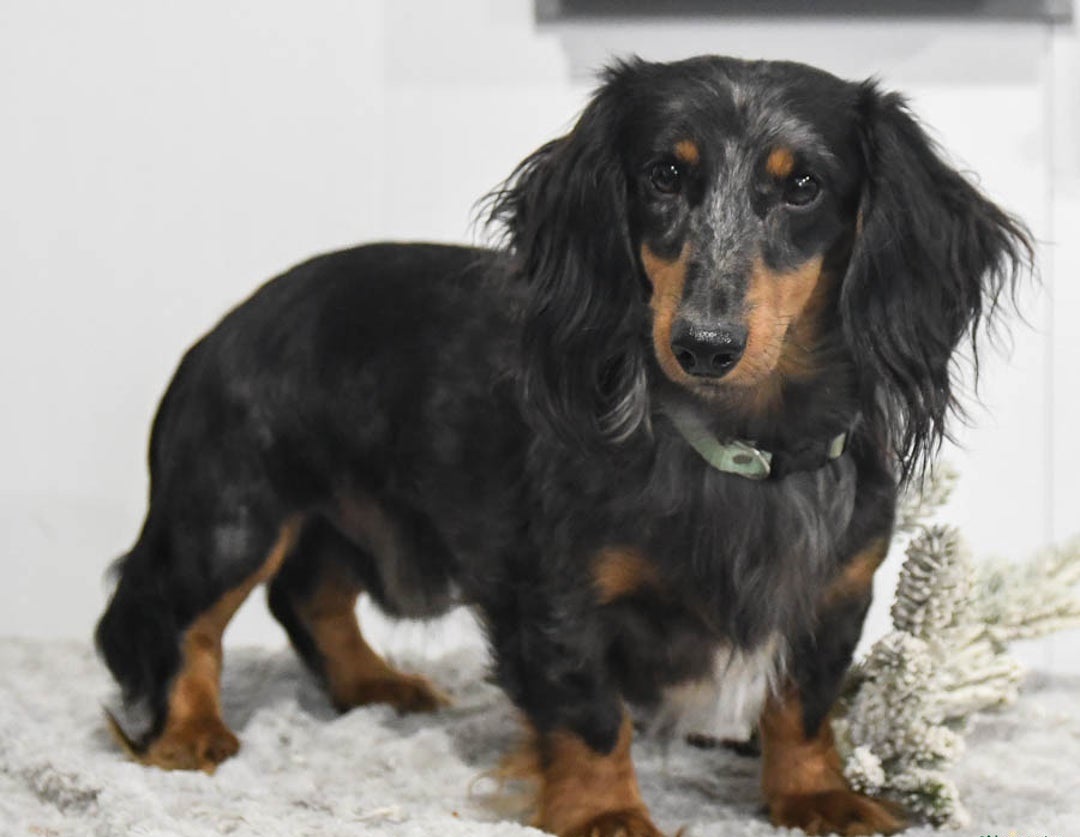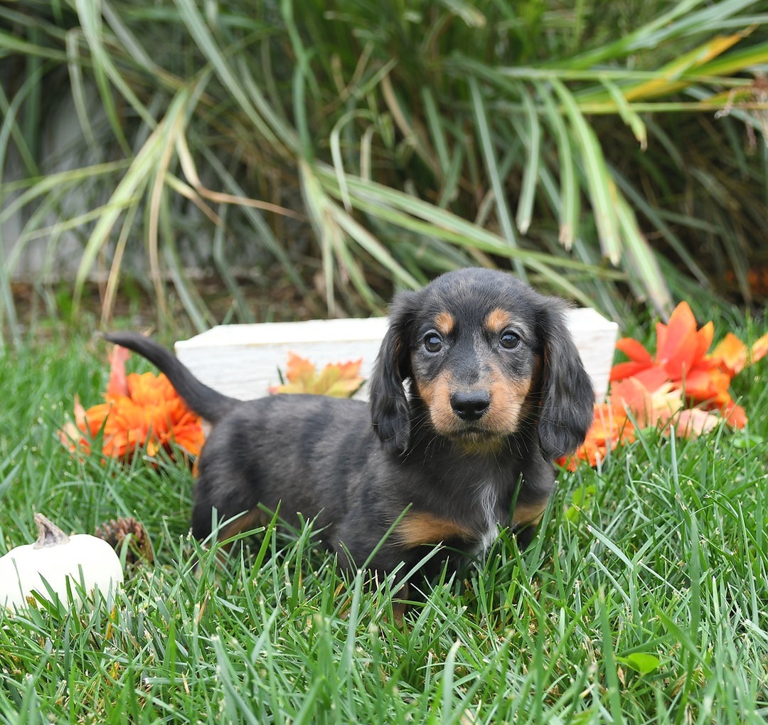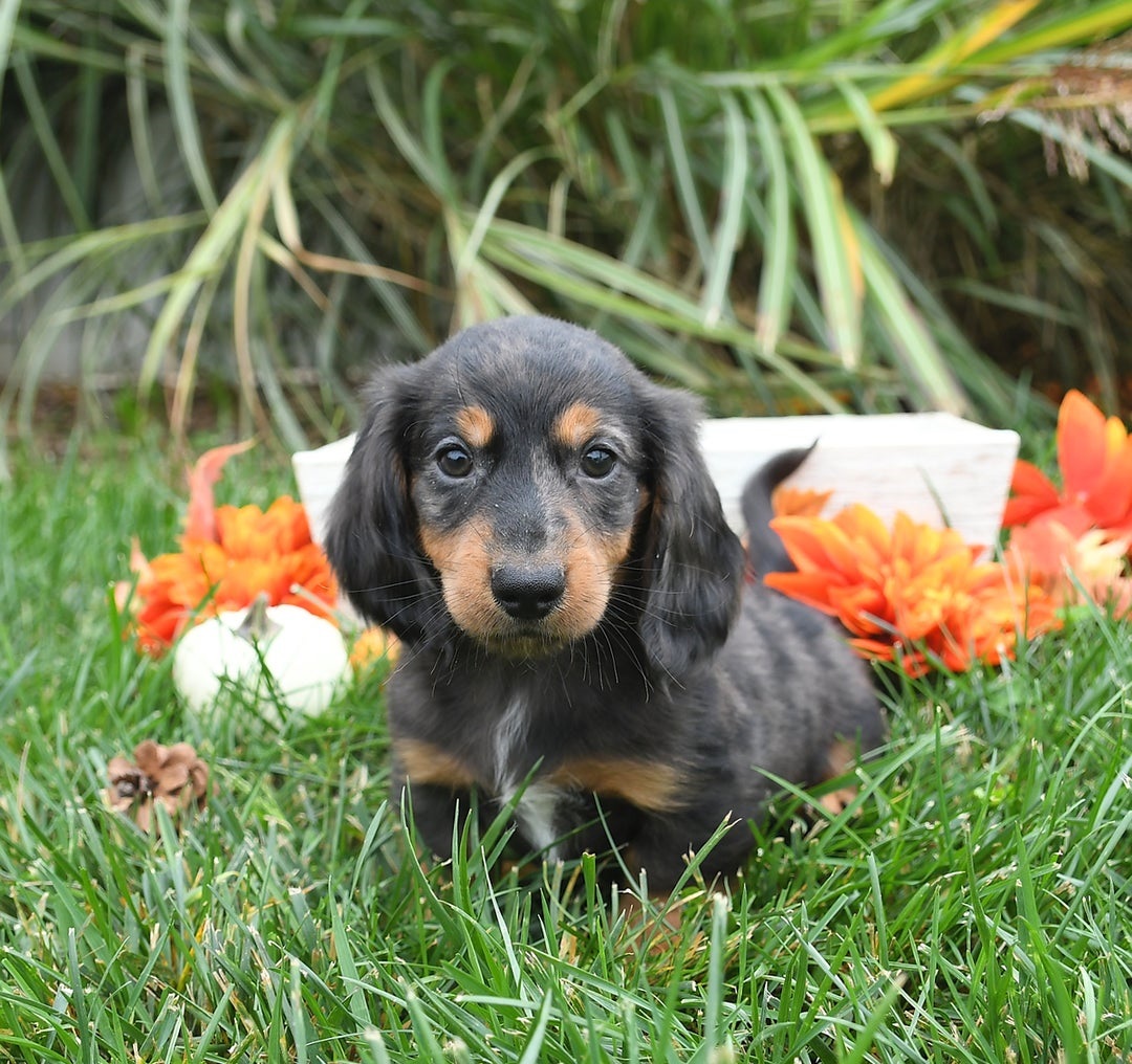 Are you in search of a cute, delightful little companion that will be by your side for many years to come? If so, this precious little Dachshund puppy will be just the thing for you! What better way to spend these beautiful fall days and the years to come than with an adorable new buddy that is sure to bring endless joy and entertainment to any household! This sweetheart is affectionate, friendly, playful and full of fun! His sweet, happy nature, wet puppy kisses and sparkling, kind eyes will melt your heart the moment you meet him! This cutie thrives on human affection and will rarely pass up a chance to curl up in a welcoming lap or loving arms for all the cuddles and snuggles he want. Quest loves attention and is sure to be the center of it no matter where he goes! This darling puppy has been born and raised here at our family home where he is loved and cared for! Quest is well socialized with children and adults and loves to play with everyone of all ages. This pup has been checked and looked over by a trusted veterinarian and is up to date on his dewormer and vaccination shots. He will also come with a thirty day health guarantee for your peace of mind. Quest is also registered under the American Canine Association, which is more commonly known as ACA. When you pick up Quest we will provide a little puppy care package to take home to help him adjust a little easier to his new home. In the package we give a small bag of puppy food, a toy, and a mini blanket. The mother, Esta, and father, Buck both enjoy life on the premises. The mother is a beautiful Black Piebald color and weighs 15 pounds and the father is a stunning Silver Dapple color and weighs 20 pounds. Get ready to start a new adventure with this cutie and imagine all of the memories you will make with the cutest side-kick by your side starting as soon as October 18th! Give us a call today with any questions you might have about the Quest!! #16149